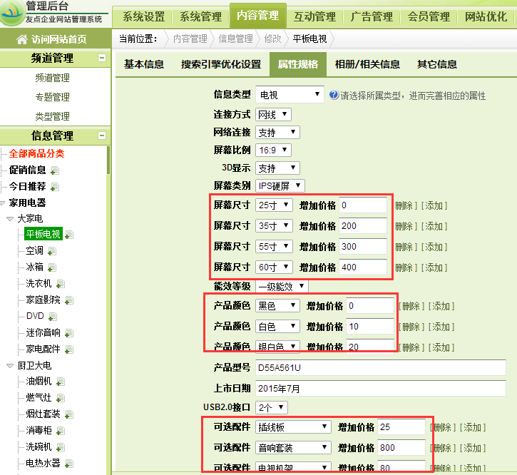 添加產(chǎn)品時,在屬性規(guī)格欄目里可以讓不同的屬性設(shè)置不同的價格