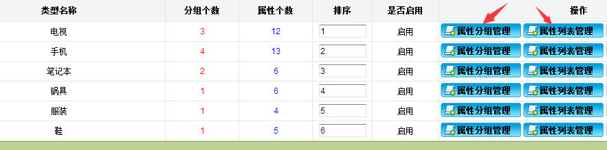 點擊屬性分組管理可添加屬性的分組: