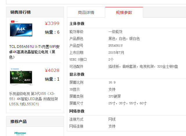 下圖為剛才對應(yīng)填寫的電視機(jī)屬性顯示: