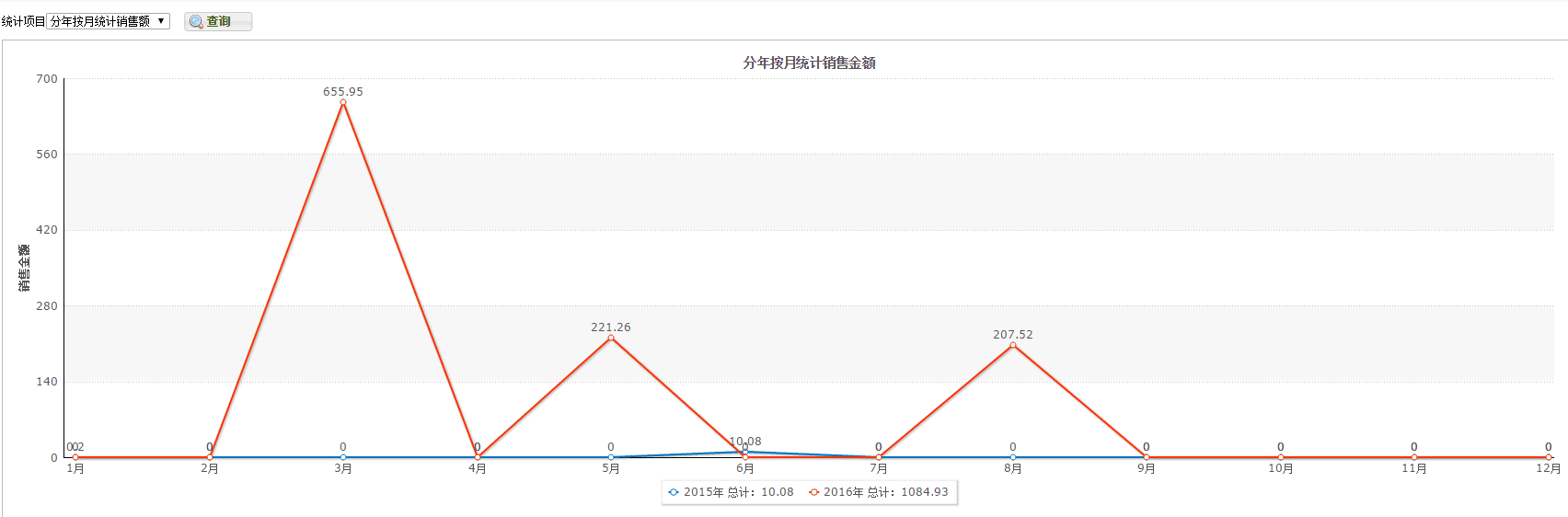 在后臺互動管理——》訂單管理里的銷售統計里可查詢銷售統計圖表,可以按天統計當月銷售額,也可分年按月統計銷售額,還可查詢銷售排行榜和銷售業(yè)績。