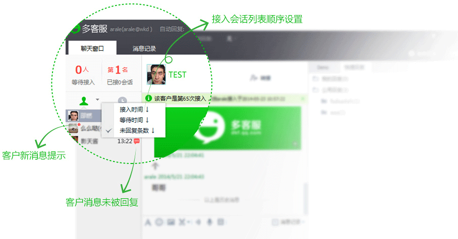 選擇啟用多客服功能后,就可以使用多客服接待,具體操作步驟如下: